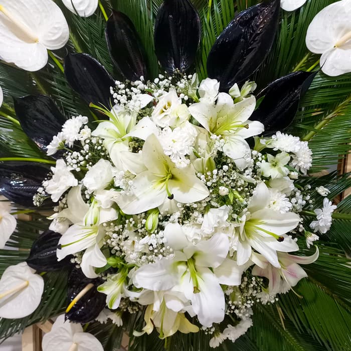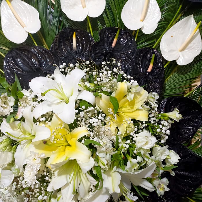 سفارش تاج گل دو طبقه ترحیم با آنتوریم با ارسال فوری در تهران